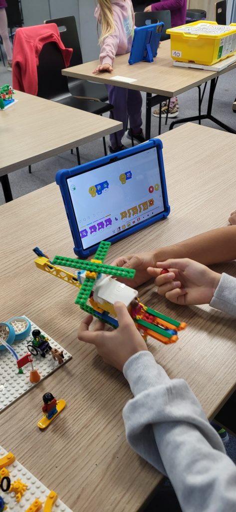Dzieci budowały konstrukcje z zestawów LEGO i programowały je tak, aby wykonywały konkretne zadania. W zajęciach wykorzystano zestawy Lego WeDo 2.0, Lego Mindstorms EV3 oraz Lego Spike Essential.