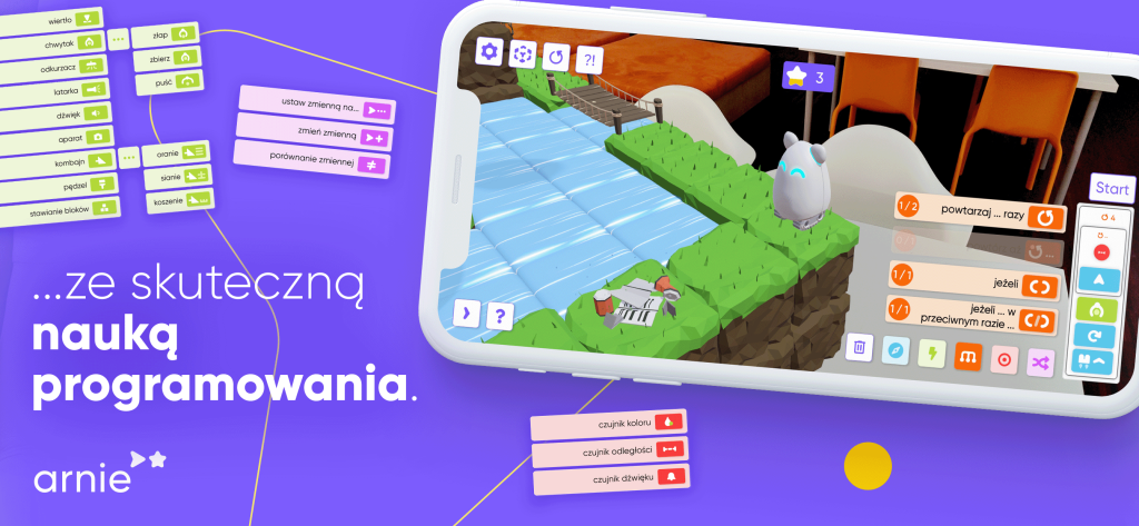 ARnie to edukacyjna aplikacja, w której dzieci uczą się programowania, układając bloki sterujące ruchami wirtualnego robota poruszającego się w przestrzeni dzięki technologii AR. Łączy naukę z aktywnością fizyczną, kreatywnością i logicznym myśleniem.
